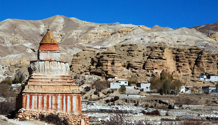 Drive through Ghami, Ghiling, Chhusang, and Tsarang, visiting monasteries and local villages. Observe the unique architecture and Mani walls along the route.